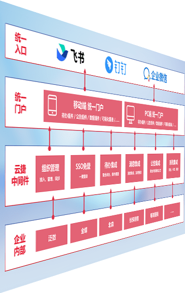 对协作平台提供支持服务,,,支持企业应用与协作平台对接,,,,包含组织同步、、、消息集成、、、待办集成等。。。支持目前主流的协作平台:钉钉、、、企微和飞书。。。