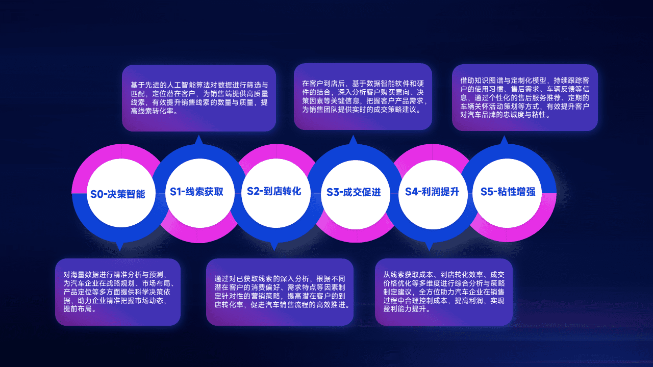 通过拓宽潜在客户来源、、、优化线索分配并提高到店转化率,,,以增强销售效率。。同时,,,,利用线索数据不断优化分析模型,,有效提升转化率,,,扩大营销影响力。。
